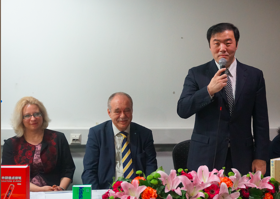 科苏特出版集团社长András Sándor Kocsis先生主持签约仪式并致辞。他说,科苏特出版集团已出版50多种中国主题图书,并把莫言等多位中国作家的作品介绍到匈牙利。科苏特出版集团愿与外研社一道,把更多中匈两国的优秀图书介绍给对方。