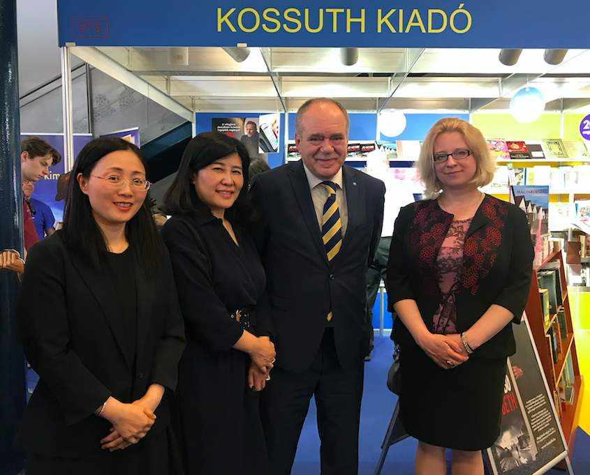 王芳书记、郭晓晶老师与科苏特出版集团社长András Sándor Kocsis