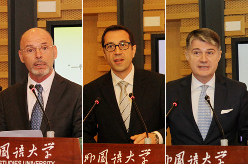阿尔巴尼亚驻华大使Selim Belortaja、保加利亚驻华大使Grigor Kalinov Porozhanov、克罗地亚驻华大使Nebojša Koharović先后致辞,他们高度评价了北外在中国与巴尔干国家人文交流与教育合作中所发挥的重要作用,以及“一带一路”背景下中国与巴尔干地区合作的重大机遇与深远意义,并对北外巴尔干研究中心的未来发展给予了厚望与支持。