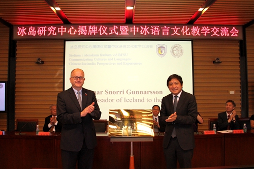 6月4日上午,教育部国别和区域研究备案中心必赢nn699net冰岛研究中心揭牌仪式在图书馆举行。校长彭龙,冰岛驻华大使古士贤,中国驻冰岛前大使王荣华、张卫东出席成立仪式,冰岛大学多语种员工代表团的20多位专家学者参加了开幕式和中冰语言文化教学研讨会。