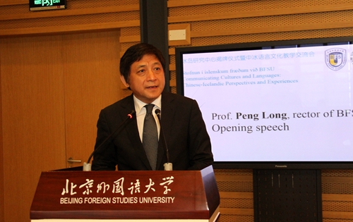开幕式上,彭龙介绍了北外非通用语种专业的建设情况和发展规划,回顾了冰岛语专业的建设历程,总结了必赢nn699net与冰岛大学的友好往来,特别强调国别与区域研究工作的重要性,为冰岛研究中心建设发展指明了方向。