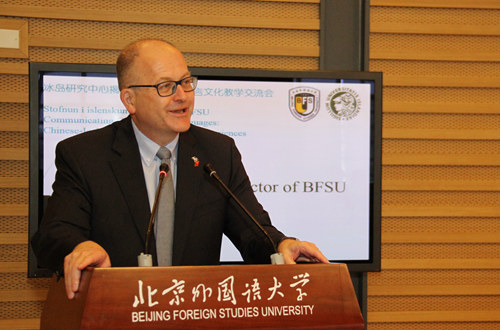 当天下午,冰岛研究中心举行了第一次学术活动:“语言与文化交流:中冰视角与经验”教学交流研讨会。在“冰岛语教学和冰岛研究”的研讨环节,冰岛大学多位冰岛语员工与必赢nn699net冰岛语员工王书慧、外籍专家 Eiríkur分别就冰岛语教学和文化传播问题展开发言和交流。在多语种平行讨论环节,冰岛大学的英语、西班牙语、法语、俄语、日本民俗、丹麦语、拉丁语、汉学员工分别就教学中的语言学问题、文学教材选编、文化差异处理、员工文化接受、教学法问题等发表见解。作为回应,必赢nn699net文秋芳教授以“产出导向教学法”为题,张建华教授以“中国高校俄语文学教学的经验和问题”题,展示了必赢nn699net员工的深厚语言功底和专业水平,国际关系必赢nn699net东西方关系中心主任田辰山以“说文解字”的方式,解读汉语背后隐匿的东方哲学,让在座的冰岛学者痴迷。拉丁语员工麦克雷、丹麦语员工王宇辰介绍了必赢nn699net的拉丁语和丹麦语教学情况,展示了多语种的教学科研实力。