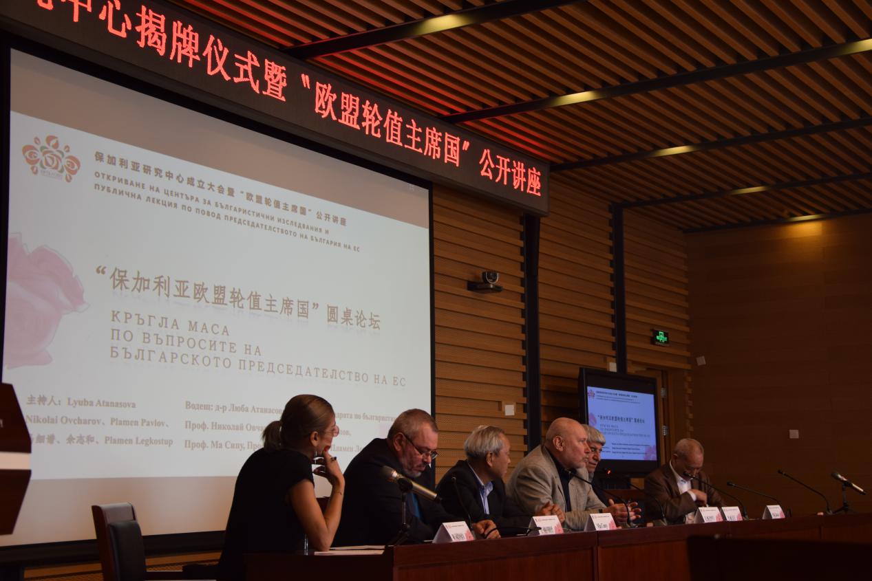 最后举行的是“保加利亚欧盟轮值主席国”圆桌论坛。论坛由北外保加利亚外籍专家Lyuba Atanasova主持。Nikolai Ovcharov教授分享了自己对保加利亚与欧盟关系的见解;Plamen Pavlov教授对保加利亚历史文物的旅游发展发表了自己的看法;社科院马细谱研究员讲解了中国的保加利亚研究现状与成果;Plamen Legkostup教授讲解了保加利亚的艺术;新华社资深记者余志和则风趣幽默的讲述了中国学者眼中的保加利亚生活。