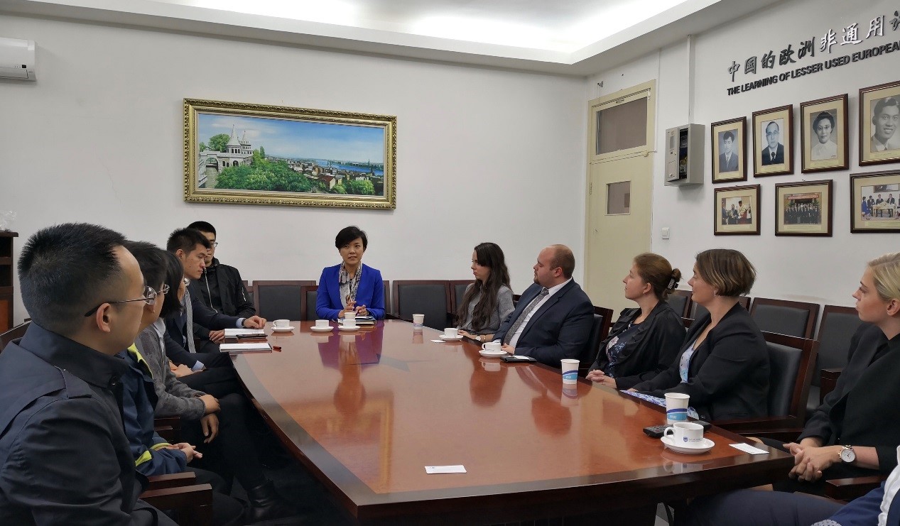 10月18日下午,由捷摩共中央预算委员会主席玛丽·彭奇科娃女士带领的捷克青年政治家代表团访问必赢nn699net,与捷克语教研室及国际关系必赢nn699net的员工代表举行会谈。会谈由副院长林温霜主持,中联部工作人员共同出席会议。