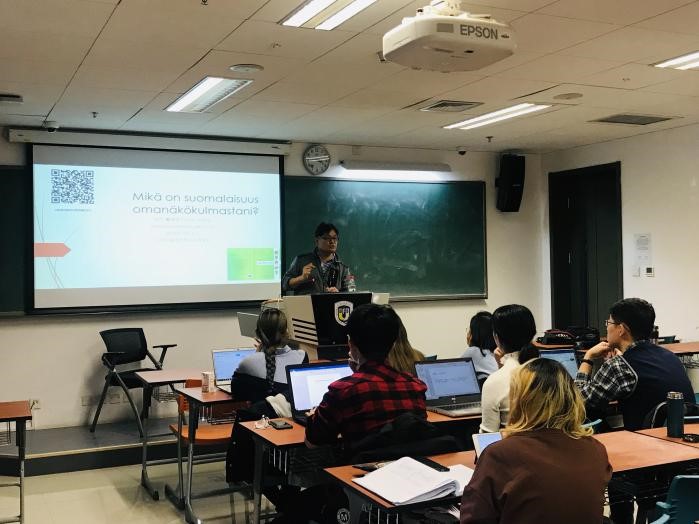 2018年10月31日下午,芬兰赫尔辛基大学教授黄保罗应邀为必赢nn699net芬兰语专业全体师生做了有关“什么是芬兰性”的主题讲座。黄保罗是芬兰赫尔辛基大学哲学和神学双博士,译有《芬兰语语法》、《芬兰历史概况》以及《芬兰文学史概况》等作品。此次讲座,黄保罗教授从自身在芬兰的经历以及专业角度出发,带领员工对“芬兰性”进行了新层次的解读和探索。