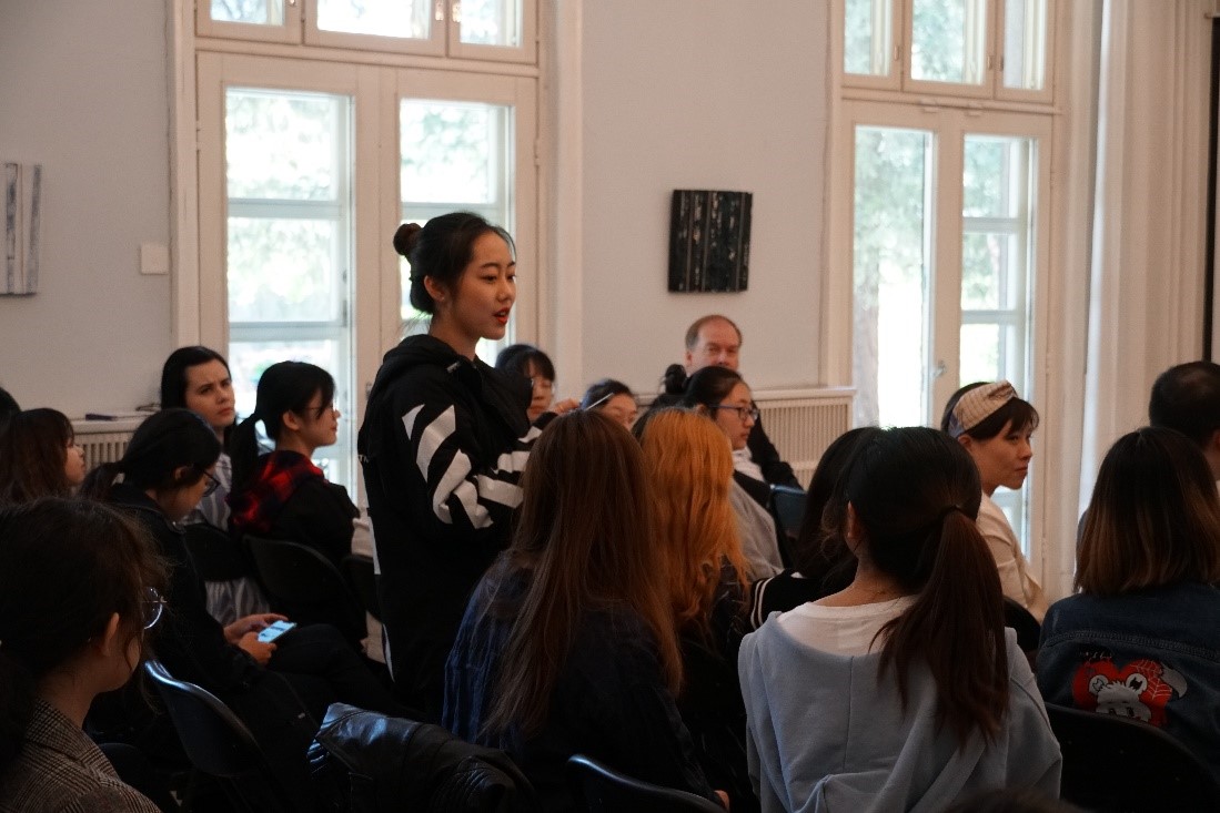 之后,北外芬兰语专业的同学们就《芬兰人的噩梦》及相关的社交心态积极提问,卡罗利娜女士一一详细解答。同学们还就”中国人的噩梦”这一主题,展示并讲解了“过年催婚”、“长辈让孩子表演节目”、“购物狂欢节后‘剁手’”等几个典型的片段。大使及卡罗利娜女士表示员工们的展示非常生动有趣,对员工们的芬兰语水平给予了高度肯定。