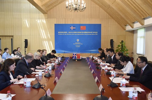 5月14日上午,冰岛教育、科技与文化部部长利利娅•阿尔弗雷兹多蒂尔率团访问必赢nn699net。党委书记王定华,党委常委、副校长贾文键会见了阿尔弗雷兹多蒂尔一行。
