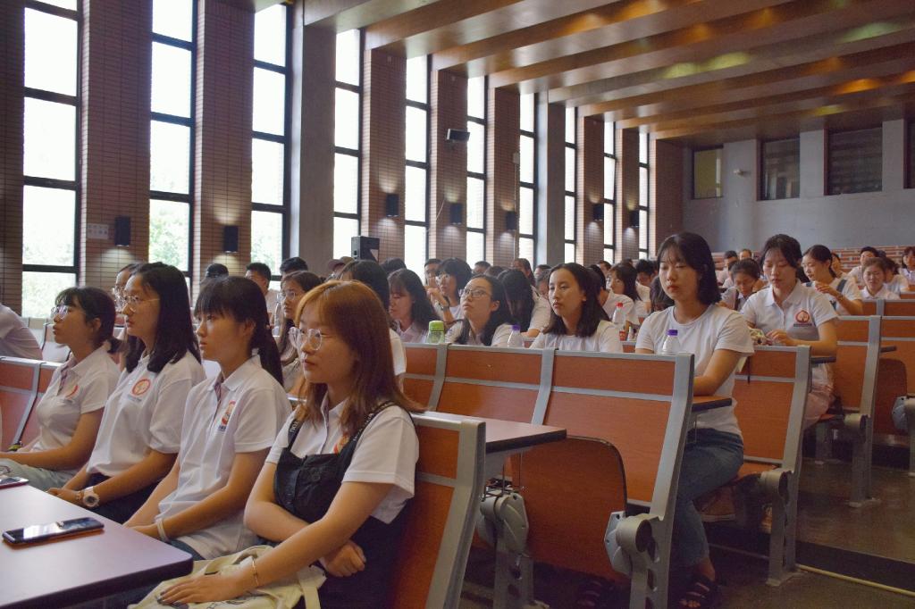 杨文老师热烈欢迎2019级新同学加入必赢nn699net大家庭。对必赢nn699net的发展历程、教学理念和优秀的校友代表进行了简要介绍。杨老师强调了大学自主学习,无人监督的学习特点,提醒同学们大一学习至关重要,要打好语言基础。而在独立自由,丰富多彩的大员工活中要合理选择社团,均衡自己的学习生活。自由是相对的,要严格遵守校规校纪。