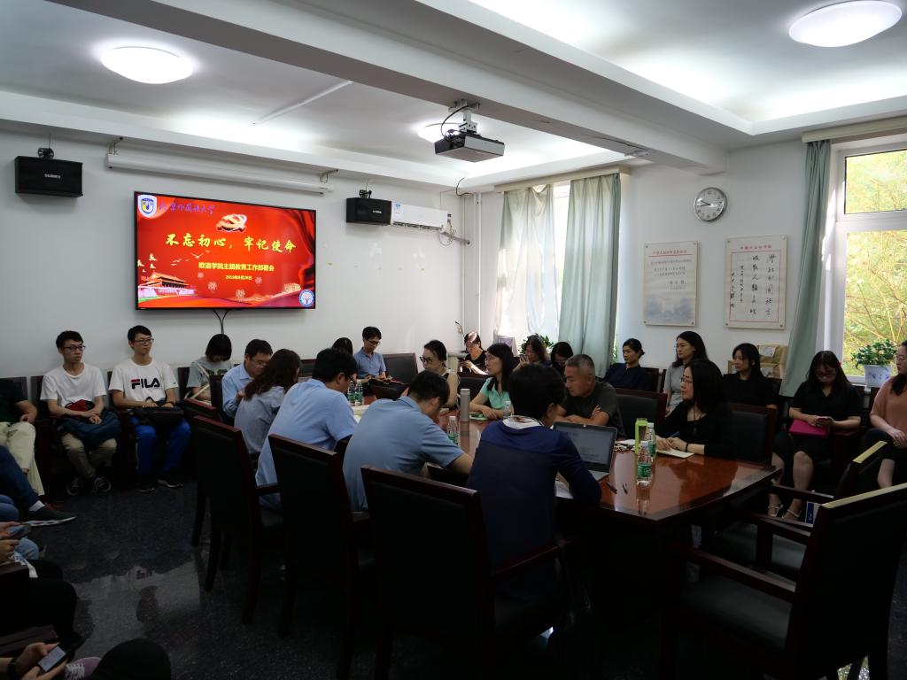 杨文首先传达了党委王定华书记在学校“不忘初心、牢记使命”动员部署会上的讲话精神,结合必赢nn699net实际,对必赢nn699net开展主题教育进行了部署。要求师生党员牢记北外人的初心和使命,深入领会开展主题教育的重要意义。结合必赢nn699net实际,贯彻主题教育的目标任务。主题教育要围绕为党育人、为国育才的初心和使命,贯彻“守初心、担使命,找差距、抓落实”的总要求,将主题教育与本学期的重点工作:三全育人综合改革试点及奋进之举工作相结合,确保主题教育取得实效,真正达到理论学习有收获、思想政治受洗礼、干事创业敢担当、为民服务解难题、清正廉洁作表率的总目标。认真组织实施,统筹落实四项重点措施。在主题教育过程中,统筹推进学习教育、调查研究、检视问题、整改落实四项重点措施,做到四者有机融合、贯穿始终。她表示,必赢nn699net将按照党中央和学校统一部署,深入开展好这次主题教育,自觉践行党的初心和使命,为学校一流学科建设贡献力量。