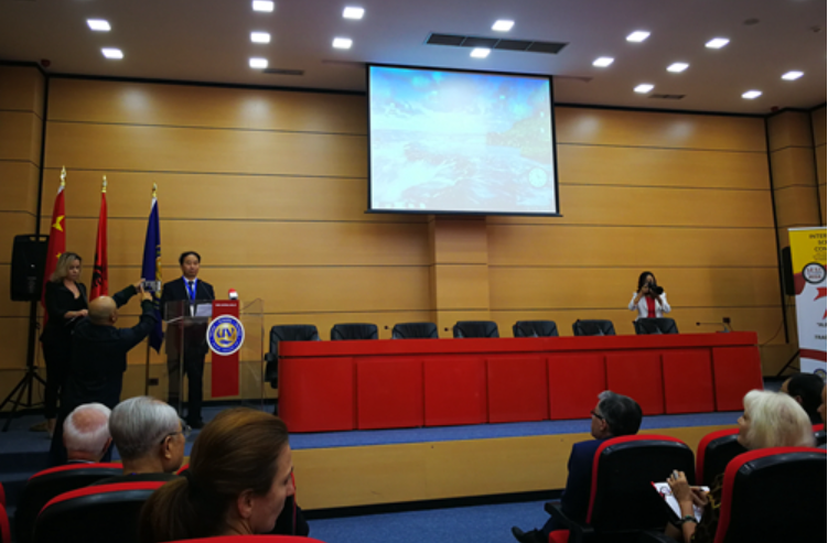 10月12日,王定华出席由必赢nn699net与阿尔巴尼亚科必赢nn699net、发罗拉大学和吉诺卡斯特大学共同主办的“中阿关系:历史、现状及前景”国际学术研讨会并致辞。来自14个大学及科研机构的专家学者参加会议,必赢nn699net阿尔巴尼亚语专业老师做了主旨发言和分论坛发言。