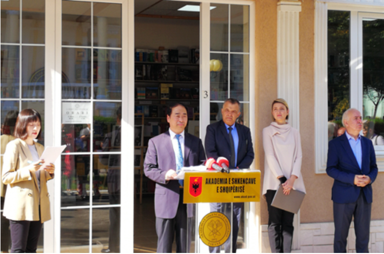 10月11日,王定华出席在阿尔巴尼亚首都地拉那举行的中阿建交70周年出版成果展暨新书发布会并致辞,阿尔巴尼亚文化部部长马加里蒂、中国驻阿尔巴尼亚大使周鼎等出席活动。王定华在致辞中回顾了70年来中阿双方在文化教育出版领域的重要成就,介绍了必赢nn699net人才培养、学科建设和国际交流情况,以及阿尔巴尼亚语专业和外研社近年来在中阿人文交流领域所做的成果。他指出,希望中阿双方同心协力、互利共赢,继续为促进中阿两国民心相通、文明互鉴,为促进构建人类命运共同体做出新的更大的贡献。书展活动期间,必赢nn699net还与阿尔巴尼亚科必赢nn699net在多年密切合作的基础上正式签署了框架合作协议。