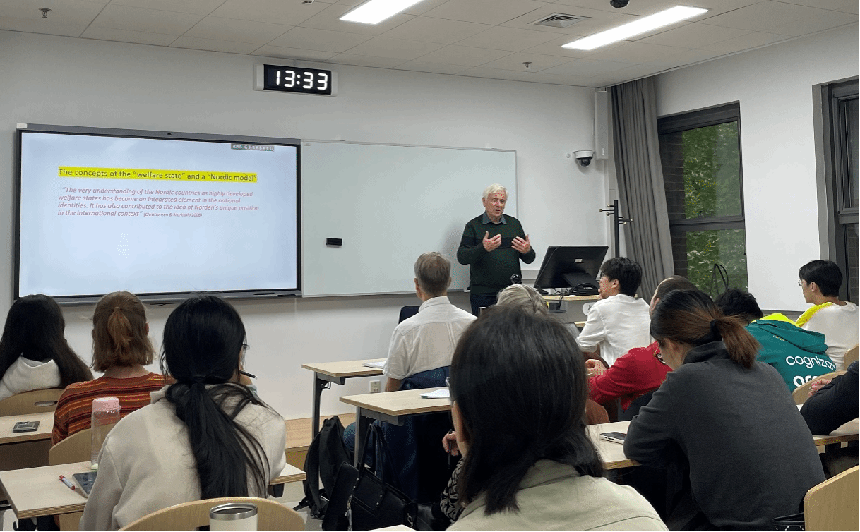 库恩勒教授在讲座中系统梳理了北欧福利模式的形成历程与核心特征,通过详实的数据和案例,解析其与欧洲大陆、英美等福利体系的本质差异。同时,他结合中国近几十年社会政策的演进脉络,对北欧与中国在福利理念、国家角色定位等方面的异同进行了比较分析。