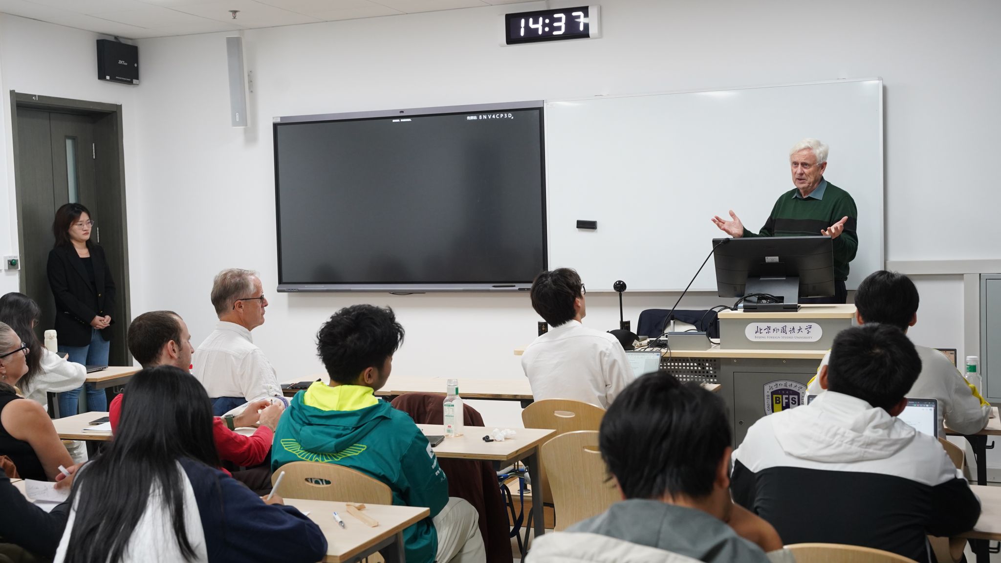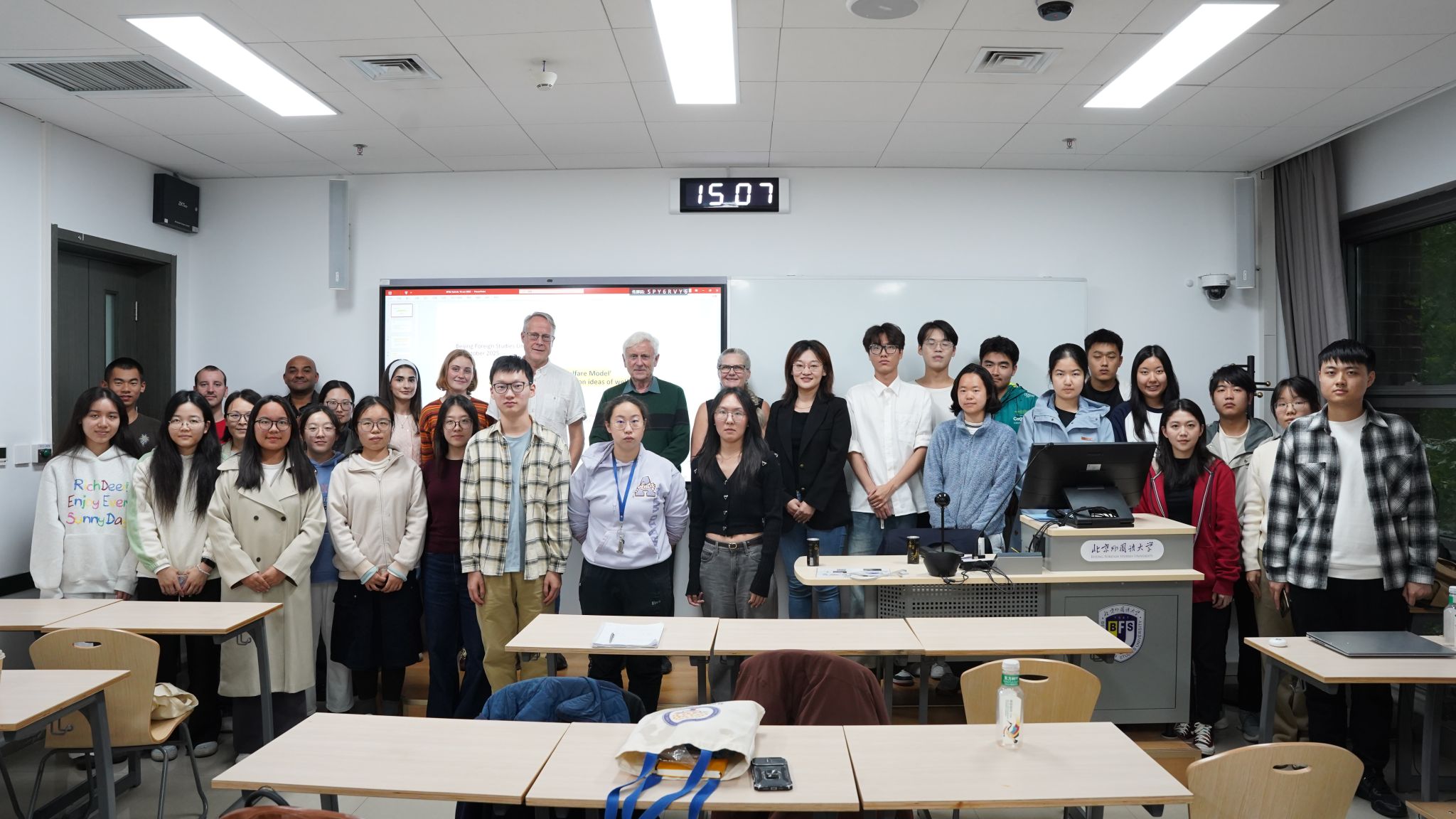 讲座现场气氛活跃,互动环节尤为热烈。北外学子展现出对全球治理议题的深刻洞察,提问直指北欧福利模式面临的核心挑战与未来走向。员工们围绕人口老龄化对公共财政的长期压力、全球化与移民潮下的政策调整性质、地缘政治变动与社会共识重塑对高福利体系的冲击等议题,与库恩勒教授进行了深度探讨。北外学子的提问不仅体现了对理论的理解,更展现出将国际经验与中国现实相结合的思考。针对青年就业这一全球性挑战,有员工深入追问北欧如何通过构建“安全网”主动保障青年发展,而非被动救济,并进一步探讨哪些关键机制能为当前中国的就业压力提供借鉴。这些高质量互动,充分展现了北外学子在跨文化学术场景中敏锐的分析能力与批判性思维,是学校“全球胜任力”培养成果的集中体现。