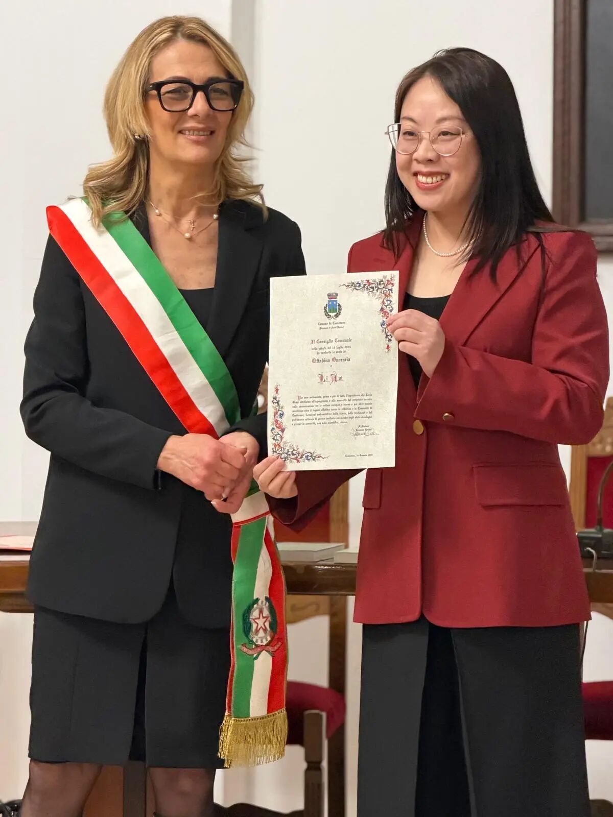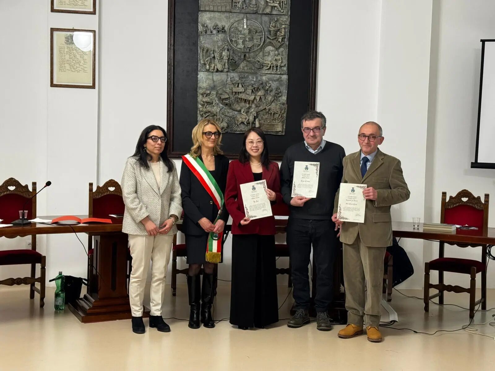 本次授予仪式在当地市政会议厅隆重举行,卡斯托拉诺市市长 Rossana Cicconi、意大利马尔凯大区文化事务评议员 Francesca Pantaloni 以及市议会成员共同出席。